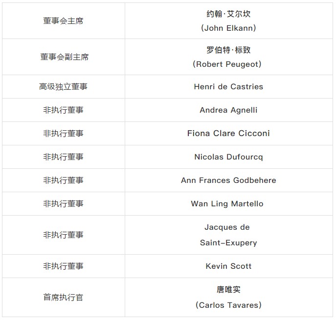 Stellantis董事会将由11名成员组成,其中FCA及其大股东Exor提名了5名成员,PSA及其两大股东提名了6名成员,Stellantis首席执行官由唐唯实(Carlos Tavares)担任。不过,有媒体对该集团董事会成员、股权机构、财务等方面进行分析,认为这场合并实际上是PSA对FCA的收购。